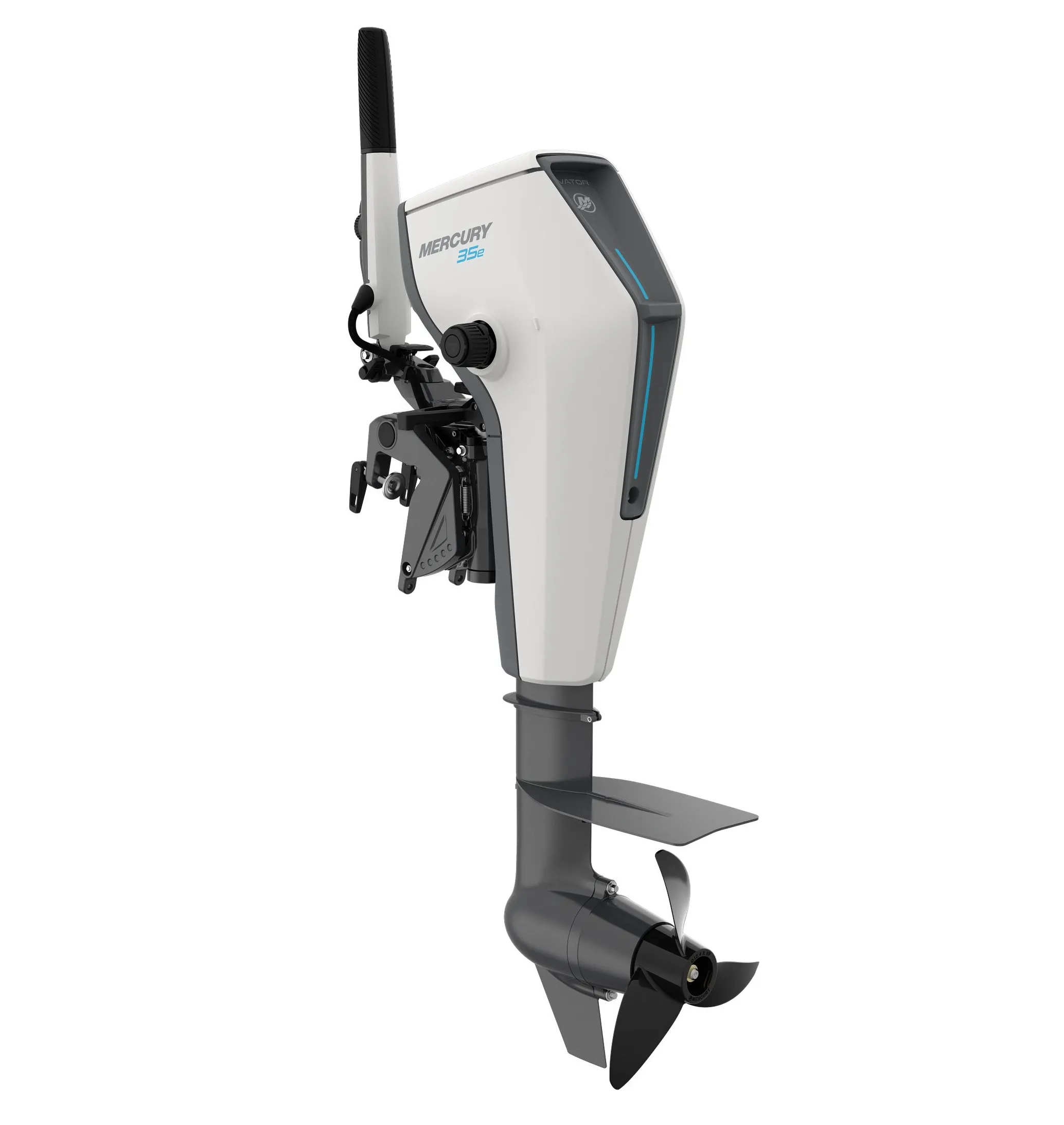 The Mercury Avator 35e electric outboard expands the capabilities of electric boating with stronger acceleration, extended range options, and the same intuitive operation found throughout the Avator series. Engineered around an advanced transverse flux motor and high-capacity battery system, the 35e delivers smooth, quiet propulsion while maintaining excellent efficiency and reliability.